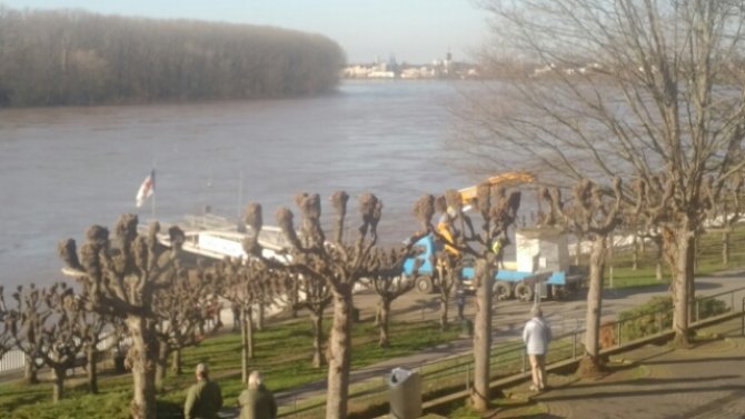 Vorbereitend wurde das Tickethaus der KD aus der Gefahrtenzone gebracht, tatsächlich war dann heute in der Nacht zum 6. Februar der Rhein über die Ufer getreten, allerdings nur ein wenig. Viele Passanten schauten sich das Naturschauspiel an, der Rhein hat eine beeindruckende Fließgeschwindigkeit, führt heute weniger Sediment und Bäume als gestern.