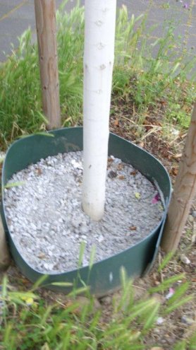 Mit Beton eingefasster junger Baum konnte gerettet werden